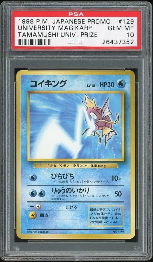 La carte Pokémon Magicarpe Tamamushi University Trophy Promo sortie en 1998 est l’une des cartes les plus rares de l’univers Pokémon.
