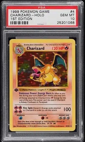 Saviez-vous qu’il existe différentes versions de la carte Dracaufeu édition 1999 ? En effet, il y a la version classique holographique, la version à peinture éclaboussée, la version symbole de l’édition, etc. Les versions holographiques de la carte Dracaufeu sont généralement plus recherchées et plus précieuses, mais cela ne signifie pas que votre carte non holographique n’a pas de valeur. L’aspect non holographique de votre carte pourrait en fait la rendre plus rare et donc plus précieuse. Une carte est ainsi partie récemment pour plus de 380 000 € !!! On dit même qu’un rappeur célèbre en aurait fait l’acquisition.