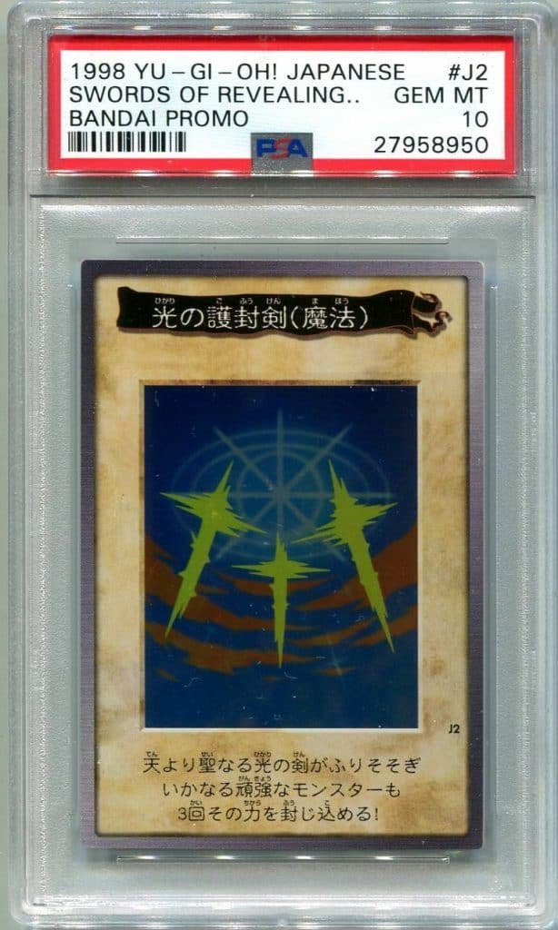 Les cartes Bandai Yu-Gi-Oh! n’étaient disponibles qu’au Japon, ce qui leur a conféré un statut de rareté dès le départ. Contrairement à l’édition ultérieure de Konami, l’édition de Bandai a été très limitée en tirage, ce qui a accentué leur valeur pour les collectionneurs. Parmi ces cartes, les “Épées révélatrices de la lumière” se distinguent comme un véritable joyau.